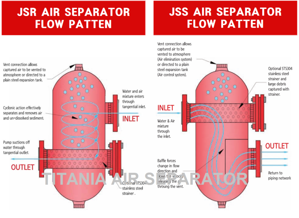 Tiết kiệm chi phí và kéo dài tuổi thọ của bơm hệ thống, đường ống và các bộ phận với các thiết bị tách khí. Bộ tách khí được thiết kế và chế tạo theo Tiêu chuẩn ASME về Nồi hơi và Bình chịu áp. Bộ tách khí có hiệu suất cao giúp loại bỏ không khí tự do trong hệ thống và giảm cặn hòa tan, từ đó tiết kiệm chi phí, năng lượng và hạn chế hao mòn các bộ phận.